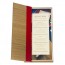 Porta cartas restaurante de Madera de Roble Natural para hosteleria con Banda de color a eligir ( Banda Exterior Design en piel sintética con respectivo cuerpo interior acabado 100% piel reciclada sintética tal cual fotos en archivo y ficha técnica).